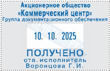 Размер поля: 58 х 37 мм, высота шрифта даты: 4 мм. Штемпельная подушка: синяя. Материал корпуса: металл, дерево.