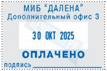 Размер поля: 45 х 30 мм, высота шрифта даты: 3 мм. Штемпельная подушка: синяя.