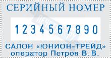 | Размер поля: 58 х 30 мм. Высота шрифта: 5 мм. Кол-во разрядов: 10. |