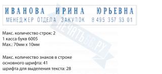 | Размер поля: 70 х 10 мм, строк 2, кол-во знаков 41/28 |